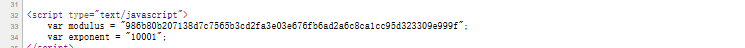 为了验证这个推测,我检查了登录页的 HTML 源码,发现 modulus 确实是直接在 HTML 的一个 <script> 标签中输出的,并且每次刷新页面,这个值都会改变。这证实了 Gemini 的判断——公钥是通过服务器端渲染(SSR)动态下发的。